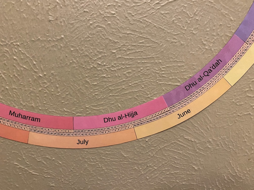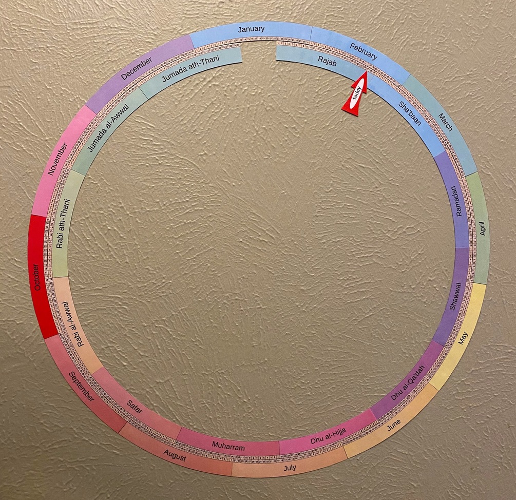 Rethinking the annual calendar to be more intuitive to little kids, overlaying Islamic and Solar months.